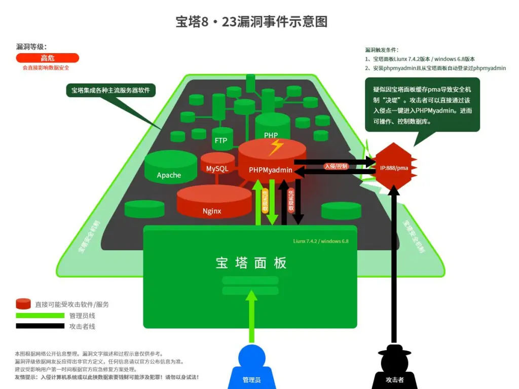 昨天下午,宝塔爆出安全漏洞,这个漏洞不知道存在多久,但影响却相当的大。