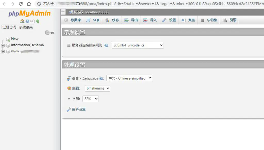 可以直接进入phpMyAdmin,并不需要密码验证,直接可以拿数据库